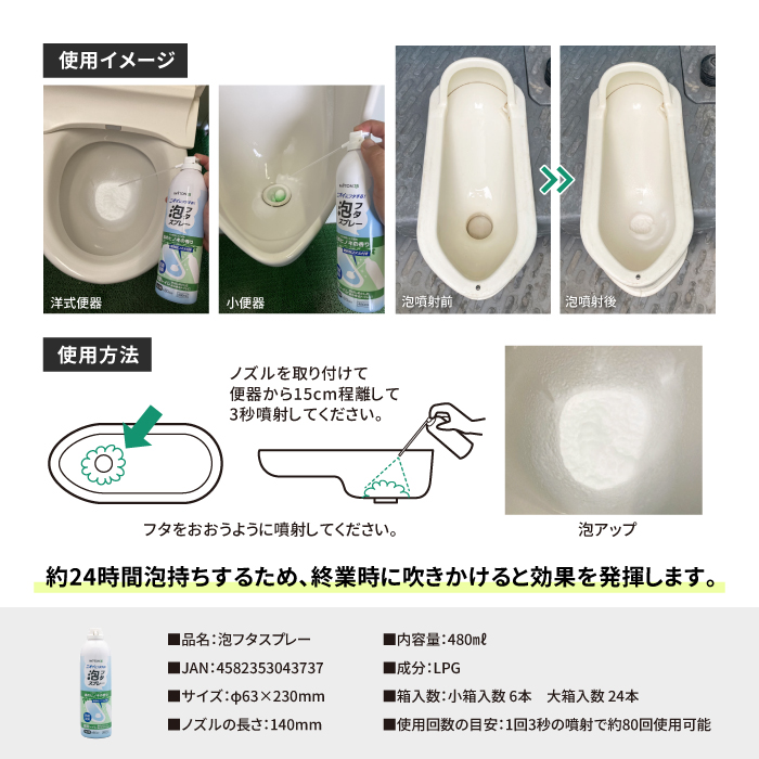 ■材質:LPG ■サイズ:W63mm D63mm H230mm ■内容量:480ml ■使用回数:1回3秒で約80回分 ■ノズルの長さ:140mm